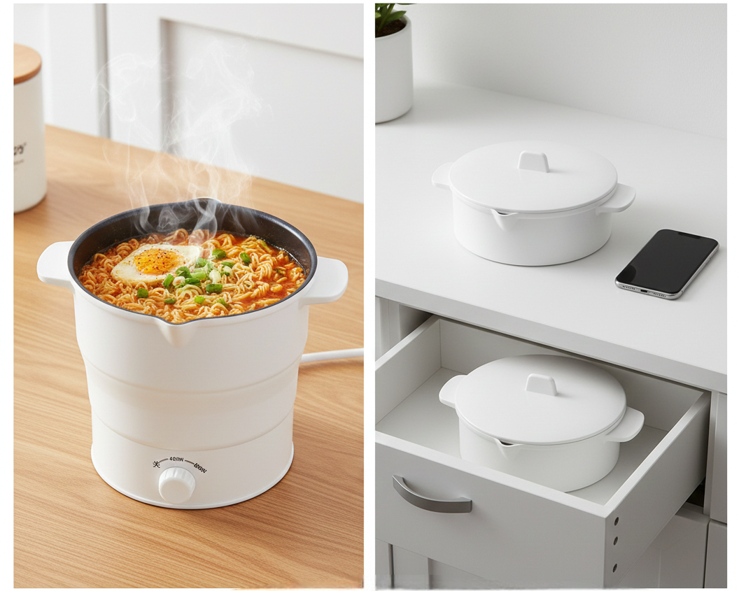 HeatOnGo cookers are designed for simple, everyday meals like rice, noodles, soup, porridge, eggs, and hot drinks—all in one compact pot.